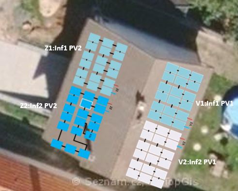 Moje orientace vuci jihu: Ps.: je super Youdo, ze mas logovani vykonu, k tomu se mozna taky dopracuji, ale zatim mam jen elektromer na FV a na DS. Pro me je nejdulezitejsi, ze DS stoji