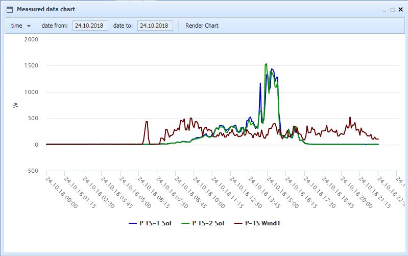 FV pole 1 - 2,5 kWp FV pole 2 - 2,5 kWp Veterná turbína - 1 kW A ešte celkový graf dnešných výkonov Dnes ma turbína nevytrhla, nebolo to až tak životne dôležité. Zajtra má byť slnka viac, takže panely to doženú. Len sa trochu zohriala po letnom ničnerobení... Škoda že s väčšou pravdepodobnosťou vietor nefúka vtedy, keď by ho bolo najviac treba!