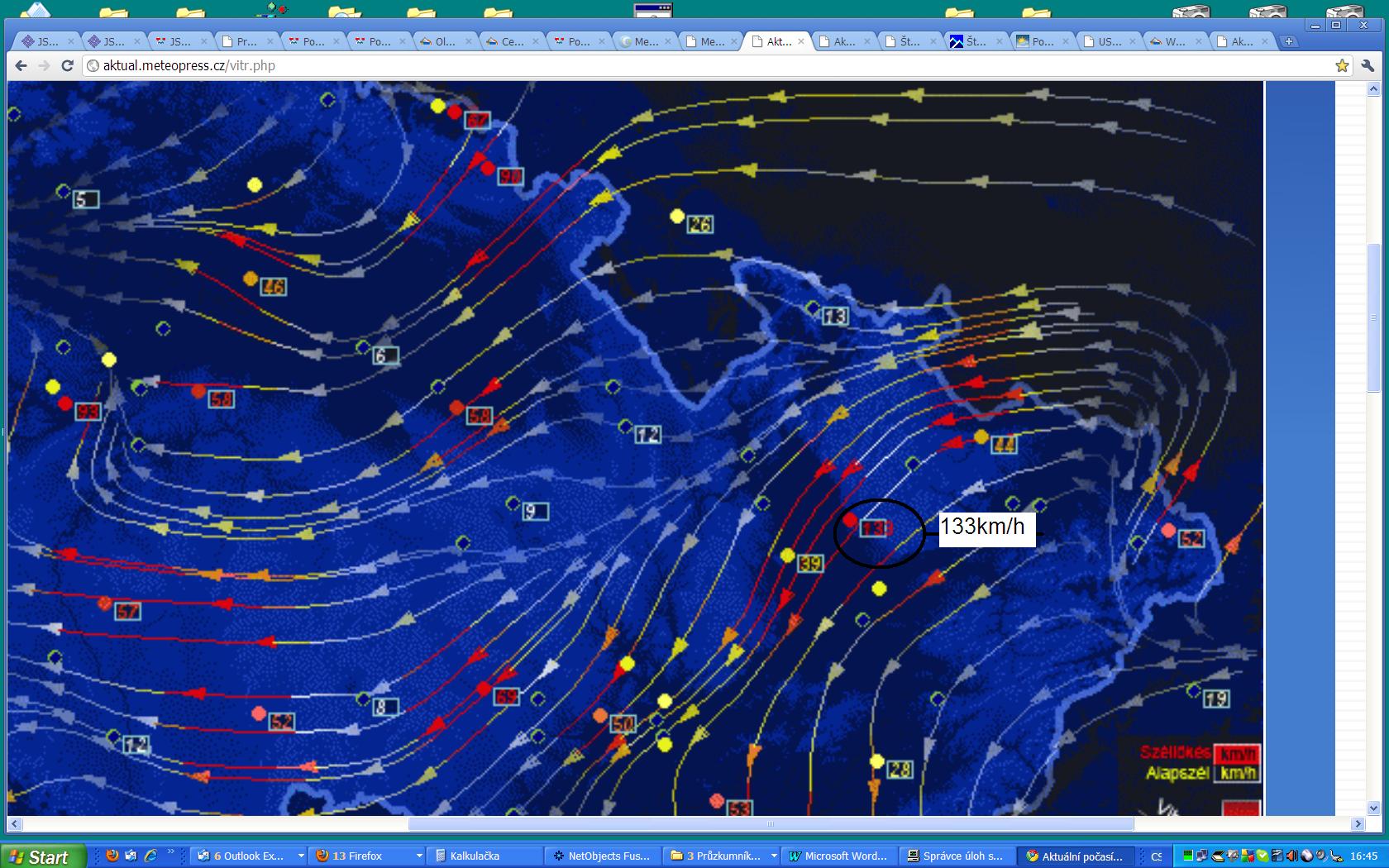 A ještě rychlost větru při orkánu Kyril, kterou větrná elektrárna zdolala bez odstávky.