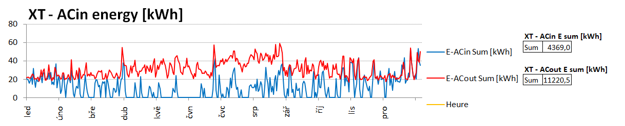 Rok 2018.Rozdíl je v tom že už jedou na elektrárnu dva domy.Vše v plné výbavě.Nedošlo ani k jednomu výpadku,nebo přetížení.Veškerá spotřeba je v NT.Měl jsem obavu když o víkendech se vaří,pere,suší v obou objektech .Dopadlo vše ale na jedničku.