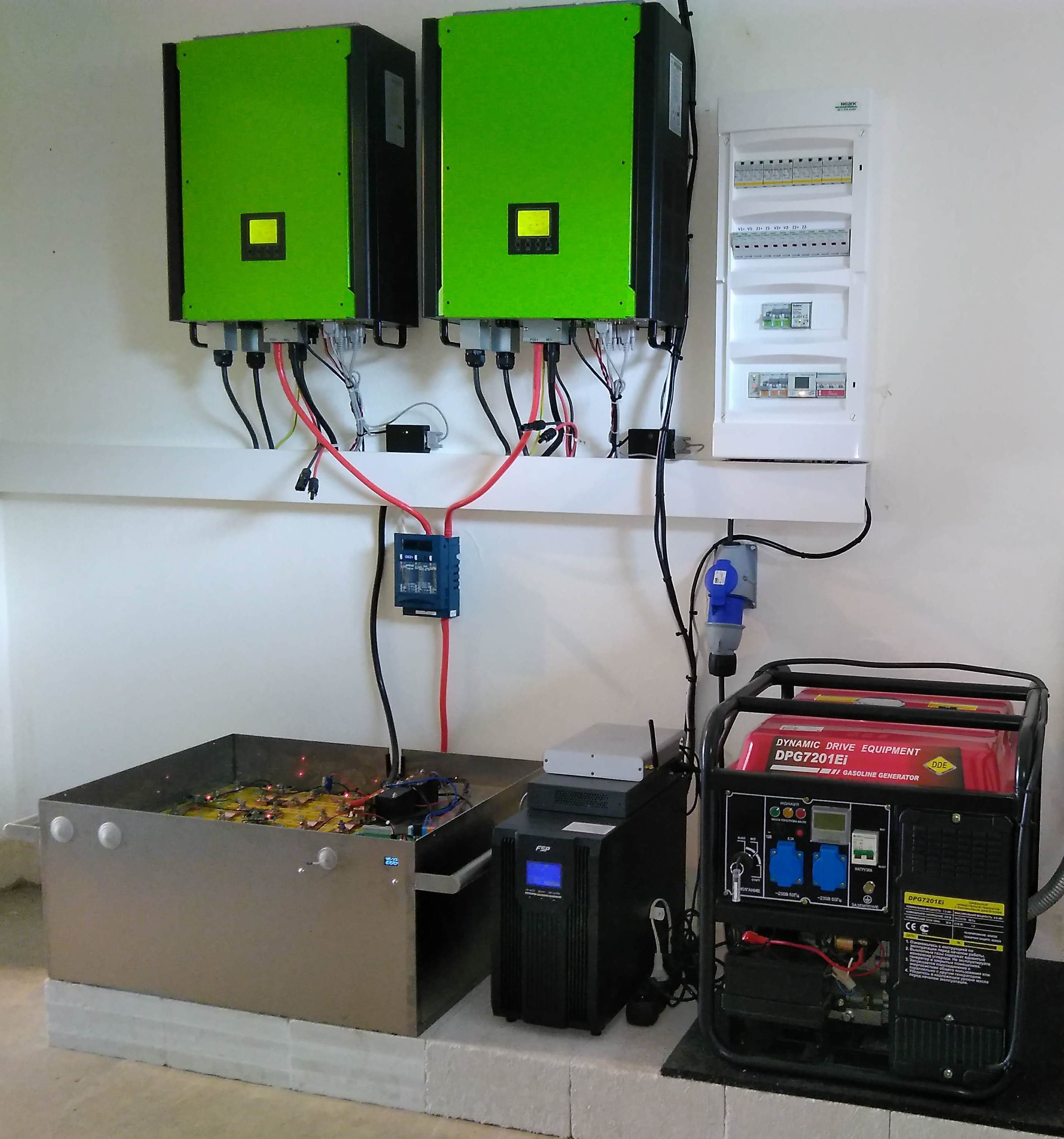 OFF-Grid FVE chata: 1,5kWp, Axpert, PCM, 200Ah/24V 18650