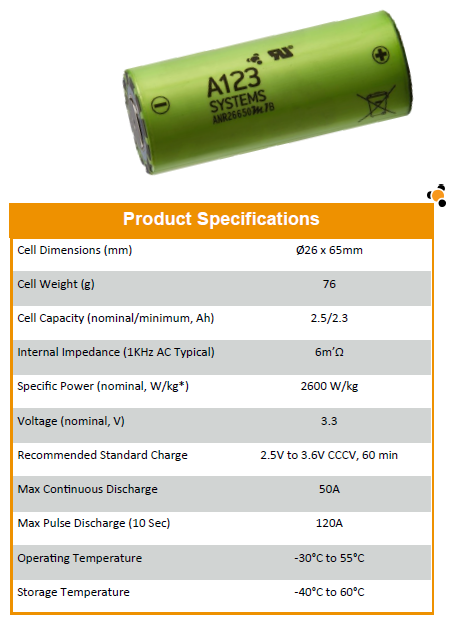 - Jedná se o kvalitní, značkové články od ověřené firmy A123 Systems