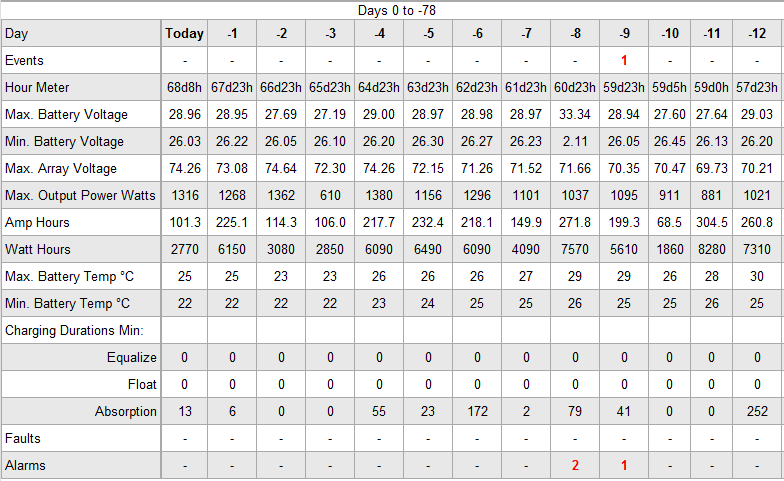 Dle mých zkušeností za slunného počasí vyrobí 2 panely 230Wp na TriStar MPPT za den 3,6kWh. Tudíš v ideální případě byste mohl čekat i 14.4kWh