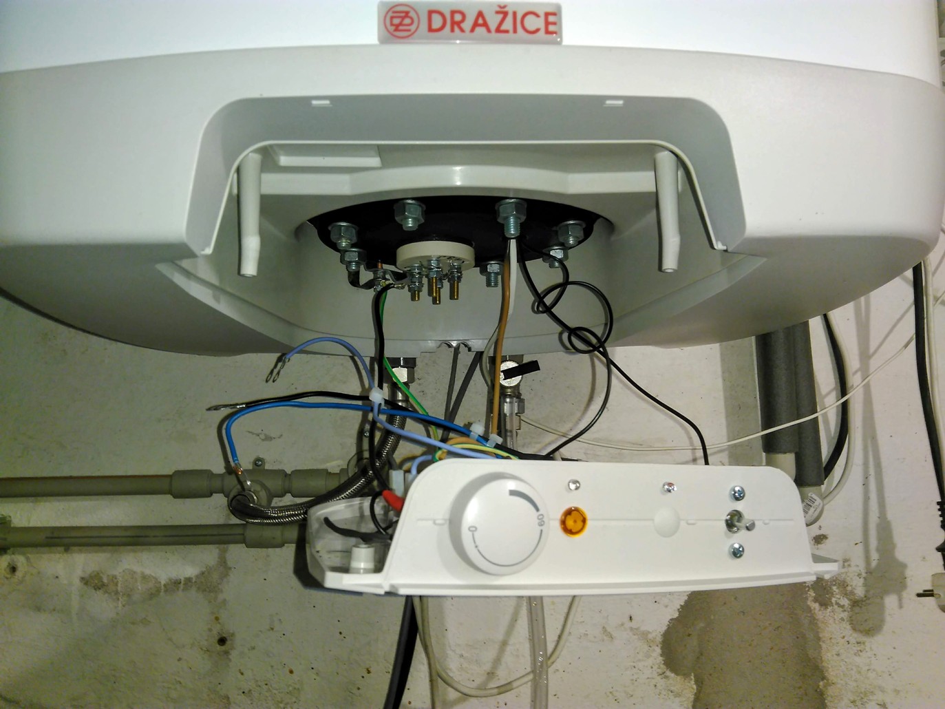 2) Každá část bojleru (FVE i DS) má nyní vlastní termostat. Tudíž lze nastavit, aby FVE nahřívala bojler na maximum, zatímco DS, aby se sepla pouze v případě, že voda v bojleru už bude velmi studená.