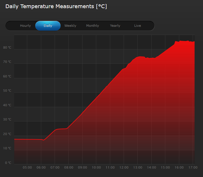 ještě nevím, na kolik nastavím to nouzový přihřívání z DS. Možná tak 20°C. Prostě aby to seplo jen když už nebude zbytí. Jak podle grafů tak ranní sprchou mám ověřeno, že mi horká voda v bojleru vydrží celou noc. A to ikdyž dvacet litrů horké vyplácám večer, až po západu slunce. Tak snad to bude OK
