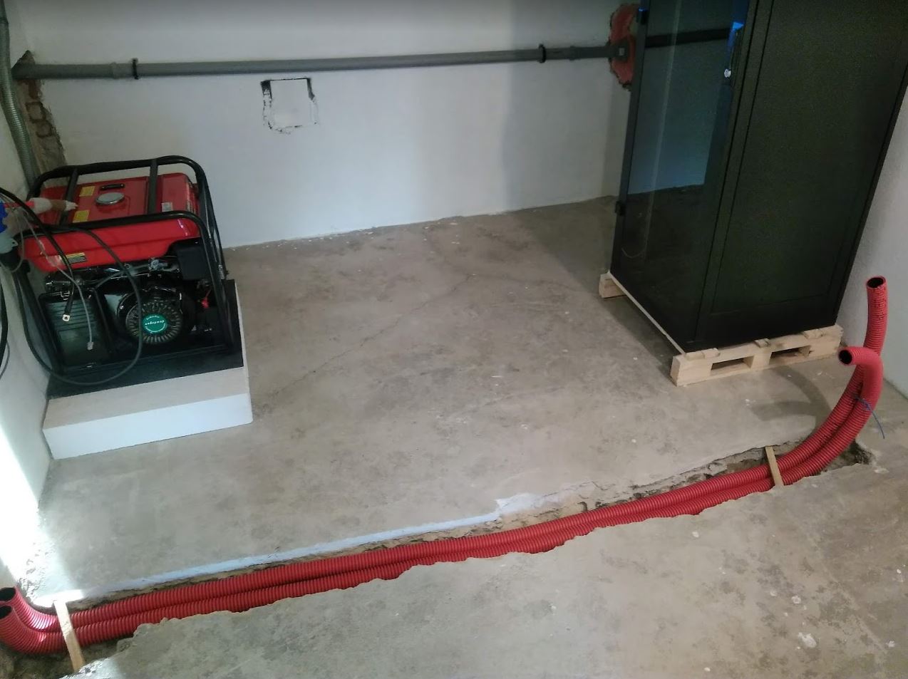 Kecám - trubky jsou tam opravdu jen ty dvě, které jsou na fotce. Každá má 50mm (vnější průměr?) Tak snad tam nacpu ty AKU kabely, uzemnění i nějaké datové linky. Jestli to budu muset bourat ještě jednou, tak už jedině dynamitem.