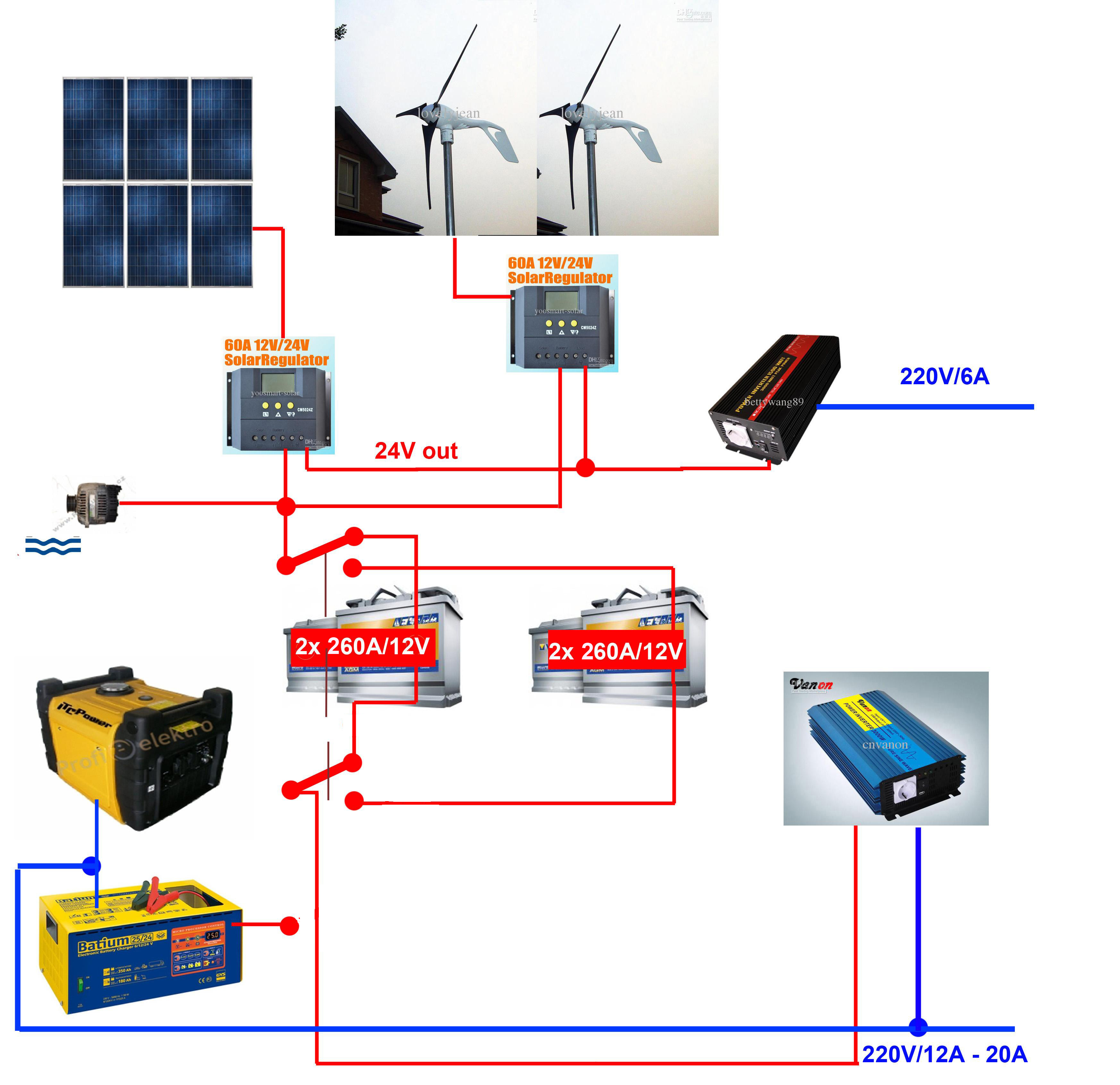 Ale k problému a k tomu co mi není moc jasný. První věc, kde si nejsem úplně jistej jestli chápu správně je regulátor. Pokud je 60-ti Ampérovej znamená to, že je schopen pracovat s proudem 60A na vstupu, dobíjet jím baterky a přitom "posílat dál" zhruba polovinu příkonu (jak uvádí většina levnějších výrobců). Tedy 30A. Prakticky tedy při 24Voltové soustavě o které uvažuju - 1440Wattů vstup (cca 6 panelů) a můžu odebírat polovinu - cca 700Wattů. Co se ovšem stane, když moje drahá omylem na tenhle okruh zapne fén ? Pápá régl ?