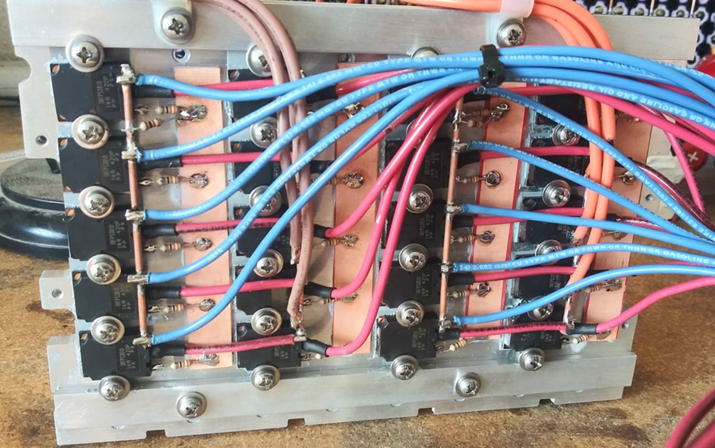 nemá, protože ty dýlky drátů mají značnou indukčnost. To už by bylo lepší mít přímo na těch sběrnách svitkový kondenzátory pro impulsní provoz. Nevidím tam nikde RC členy proti překmitům, a buzení jenom přes odpor taky není to pravý ořechový. amatérizmus, dotyčnej asi ani nemá osciloskop, aby viděl, co způsobil...