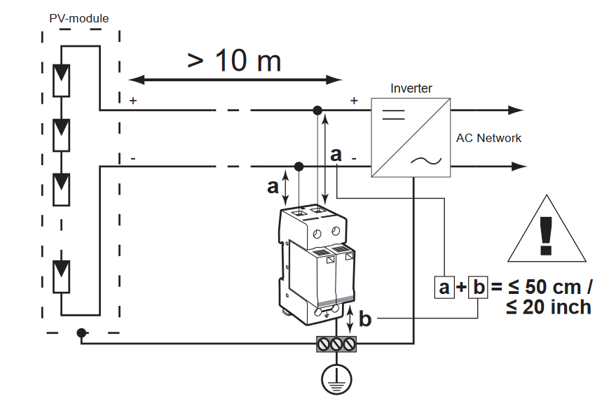 typicky se to dělá tak, že přepěťovkou jistíš panely na obou přívodech. Tedy plus i mínus. Se zemí se spojuje pouze rám panelů a konstrukce: Pokud bys chtěl z nějakého důvodu spojit se zemí i mínus pól panelů, pak je potřeba tuto informaci ověřit v návodu k reglu či k měniči. U některých typů je spojování se zemí výslovně zakázáno - například Axpert, InfiniSolar Plus.