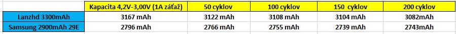 Nie, cykluje sa 4-3,45...len test kapacity po 50 cykloch je 4,2V-3V (2 testy a uvadzam priemer)vlkazajac píše:Asi tomu moc nerozumiem - test prebieha od 4,2 do 3,0 V, to je takmer celý rozsah pre SOC, pod 3 V tam predsa veľa kapacity nezostáva. Skôr by som povedal, že test riadne rasuje baterky, čo sa týka životnosti, keď využíva maximum napätia.