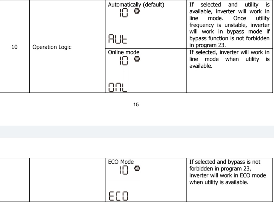 Defaultně je AUTomatika a problém je ten že měnič jede v módu ONLine. Takže trvale dobíjí baterii ať ze slunce nebo z DS.