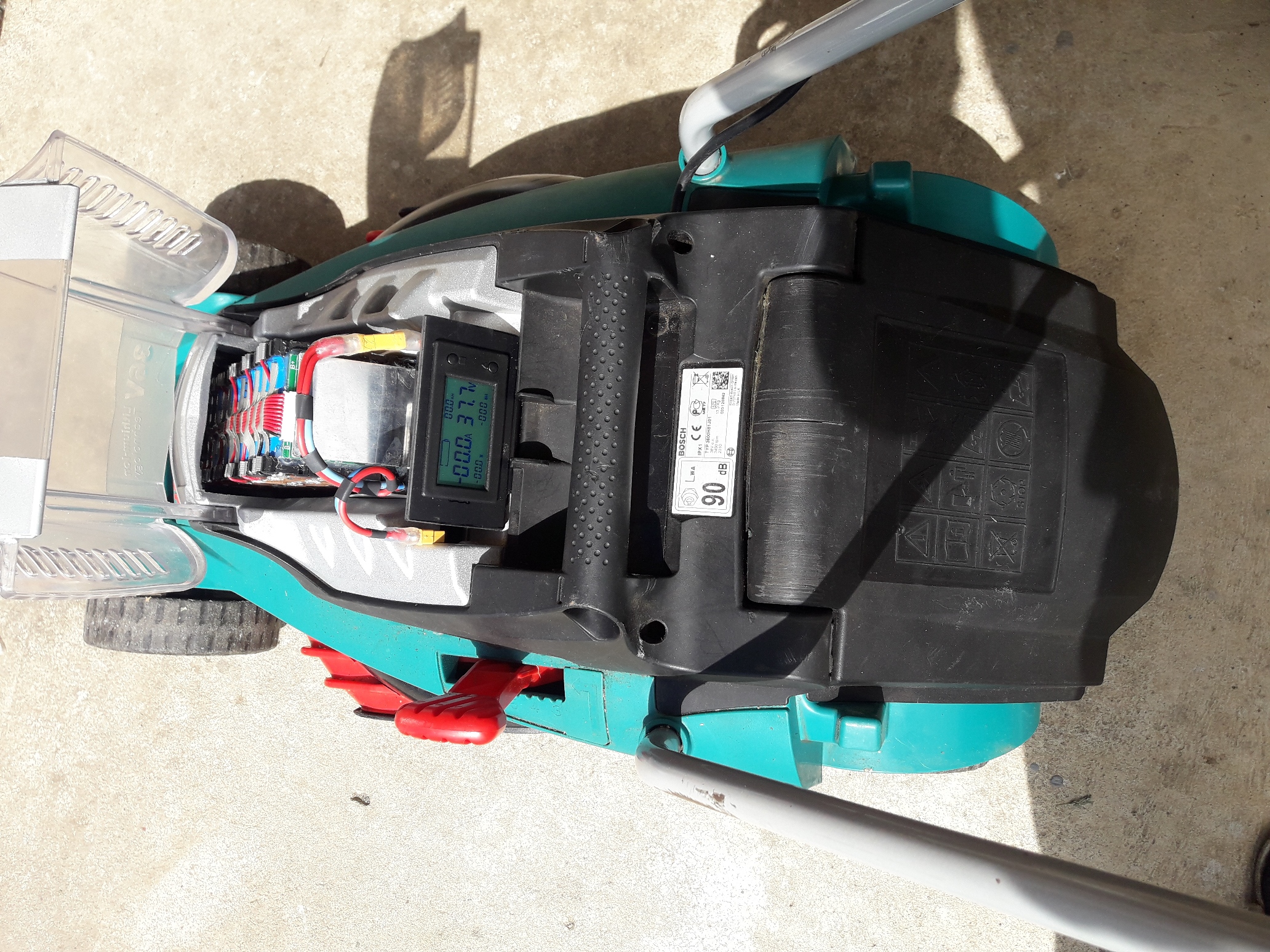 Dnes som dokončil opravu kosačky, ešte som tam doplnil meranie. Viem že je to zbytočnosť, ale keď sa mi už doma prístroj povaľoval, prečo ho nevyužiť. Teraz budem vedieť koľko Ah miniem na jedno kosenie.