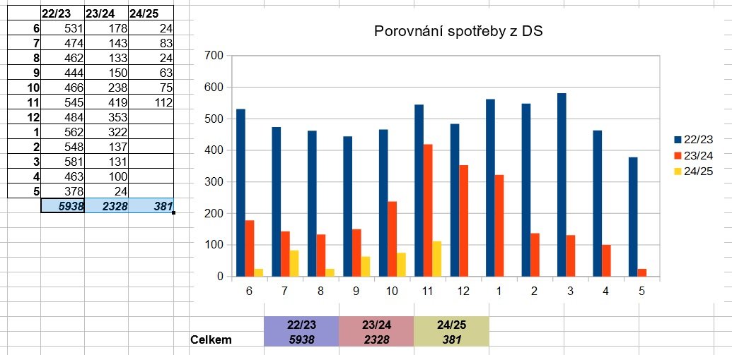 Ale i přesto spotřeba z DS mile překvapila. Cíl (po přestavbě na SkyFVE v2) byl pro zimní měsíce dostat se se spotřebou z DS pod 200 kWh a to bylo splněno v listopadu s přehledem. Takže letošní dvoufázová přestavba se evidentně povedla