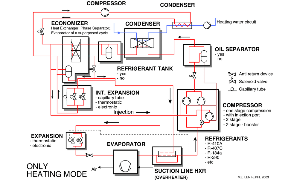 No největší herky jsou ty přestavby levných split klimatizací, čili výměna vnitřní jednotky za výměník chladivo/voda. Výrobci TČ do chladných oblastí (CCHP) tam přidávají další výměníky, říkají jim třeba "ekonomizéry", viz třeba přiložený obrázek. Tím se snad nějak snaží zvyšovat účinnost, ale otázka zní, co z toho je tam fakt potřeba...