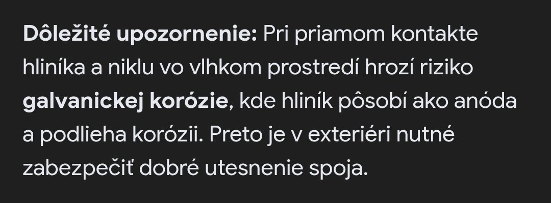 Větší problém u hliníku než koroze (které lze předejít, a nejen těmi cupal podložkami), je to, že teče.
