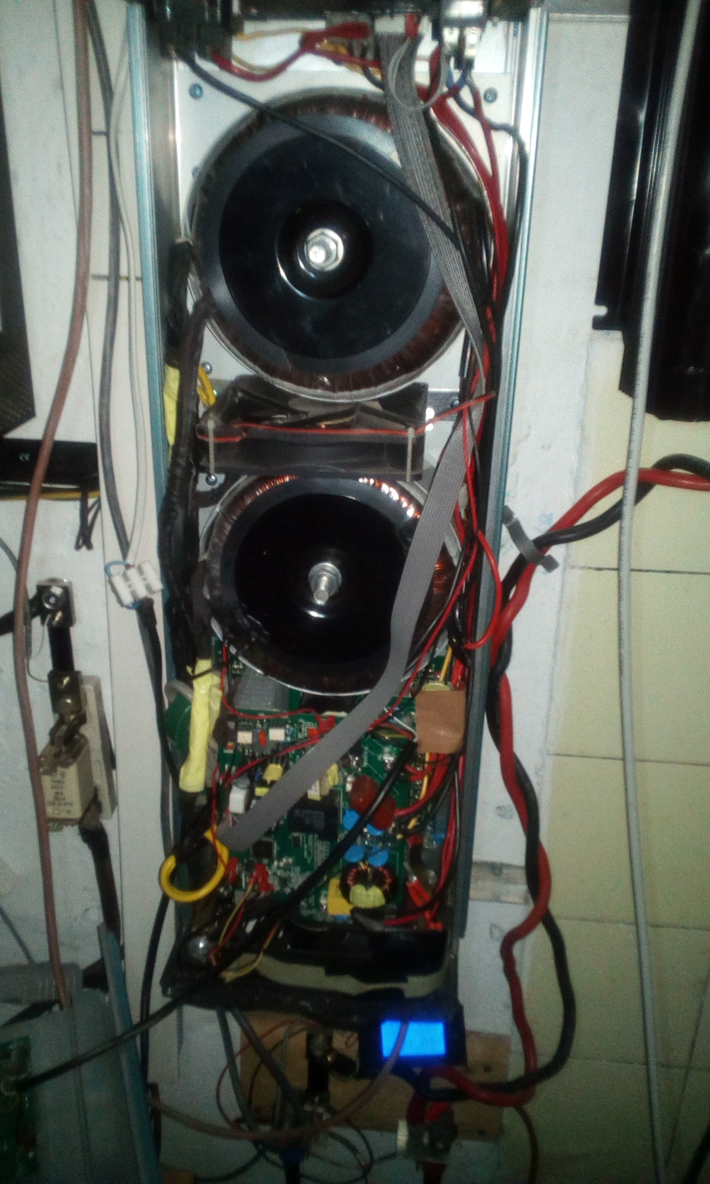 Ale musim sa priznať odflakol som informačnu pripravu na vytažovač,lebo som bol v tom,že signalne rele v axperte dokaže odpajať aj pri prechode na sieť a tym zabespäči aj odpojenie merania AC a vytažovača. Žial jak som to v noci testoval,nič sa nedialo,až jak som vliezol do papierov,tak som čital,že prepnutie relatka nastane len jak napätie baterie klesne a stupne v bode 12 a 13 nastaveni axperta. Tak tym som to cele odflakol a musim sa dostať do axperta aby som signal prebral z prepajacieho relatka priamo. Hadam je prepajacie rele napajane na 12v a nie na 48,lebo mam iba 12v male relatka. No nič pridavam fotečku ako ma to čaka v dielni. Vnutro bedne žial fotiť nebudem,lebo každa blbosť je niekolko chuchvalcov kablov naviac a Ja to robim iba z odpadu,tak sa nechcem