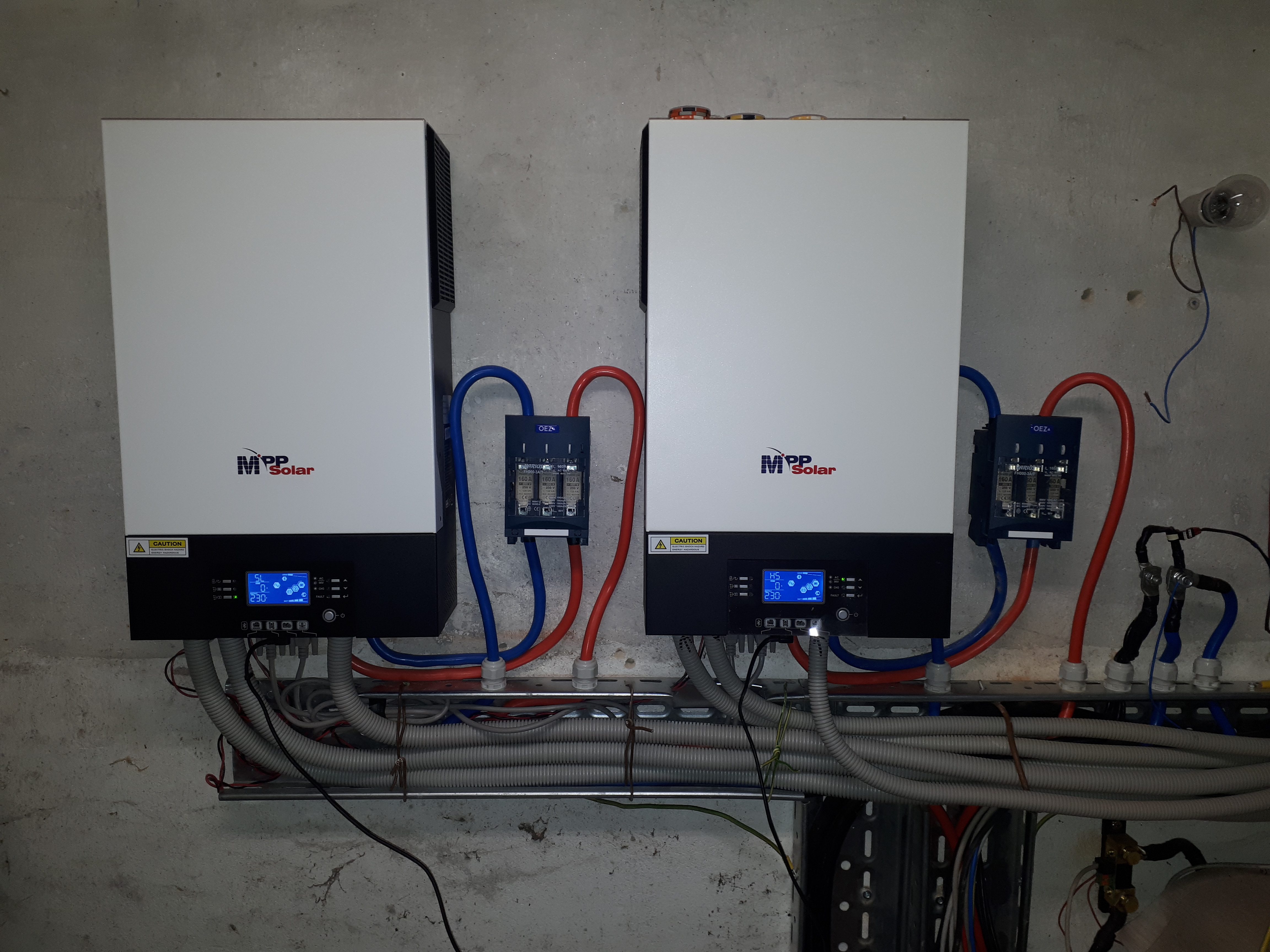 Pekne to mas spravene. Tie menice su predpokladam sparovane a spojene na jednej faze. Ak by sa kazdy vecer jeden z nich na noc vypinal bol by to problem? Totiz to mam vo svojej hlave plan upgradu svojho menica a premyslam prave nad kombinaciou 2ks axpertov v paralelnom zapojeni. Ale aby zbytocne v noci nezrali elektriku obidva, tak by som nejakym jednoduchym casovacom jeden z nich vecer vypinal a rano, alebo ak bude poziadavke na plny vykon zapol.
