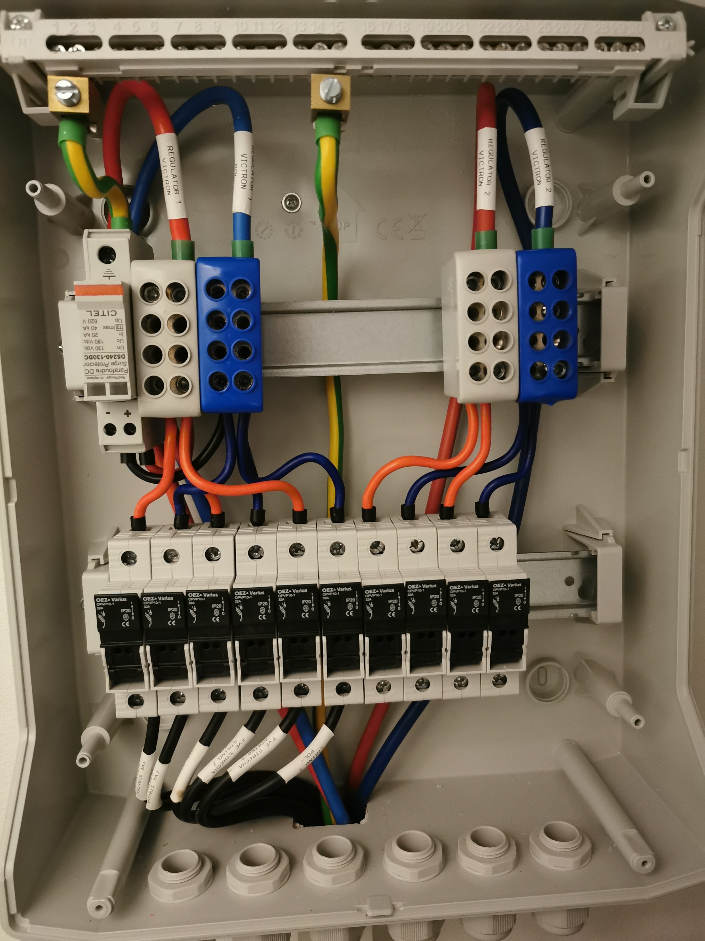 Tak mě včera odpoledne inspiroval kobra k popiskům a dodělal jsem fv rozvaděč. Pomalu a jistě finišuju část rozvaděčů a už mi schází oplet kabelů aku, rozpojovací konektory na ve-direct a teplotní čidlo a dodělat aku. Včera jsem objednal ještě pojistkové pouzdra, takže se to ještě pozdrží, ale asi to bude zase vycházet líp rozložením v krabici.