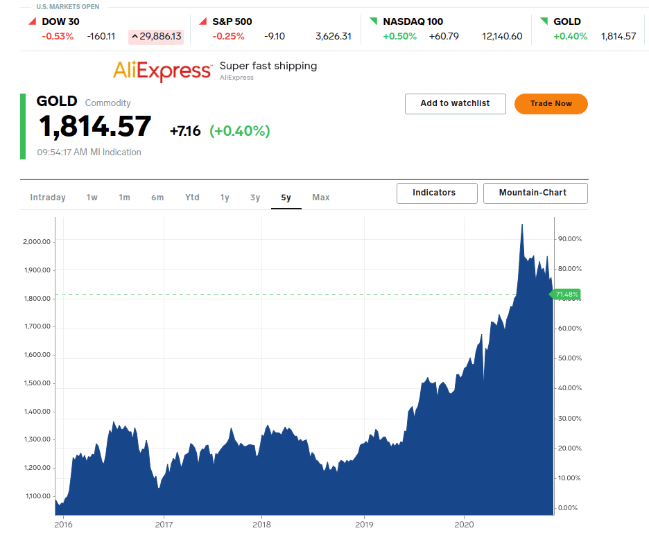 Takže možno nás o pár hodín čaká nové ATH. Pre porovnanie cena zlata za 5r.