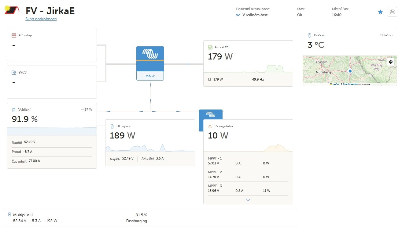 Dnes ráno jsem se znova pokusil o ,,restart" vypnutím a zapnutím, po té, co to bylo od večera vypnute - včetně DC strany.