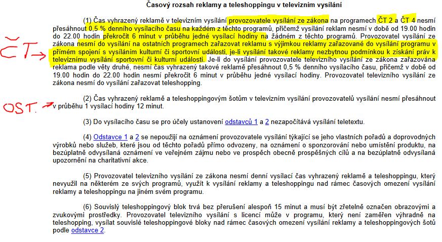 - ČT také může získávat finance z reklamy, ale má na to jen poloviční čas. 6minut každou hodinu.