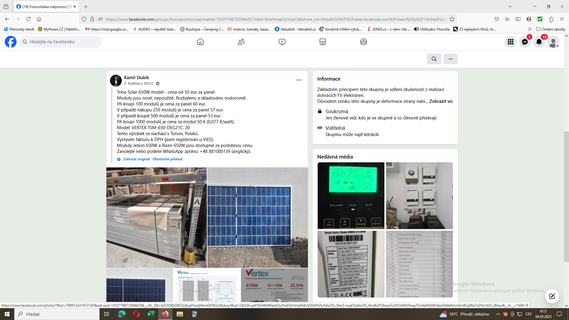 Nechal jsem si poslat foto panelù 410W za 820kč bez DPH.