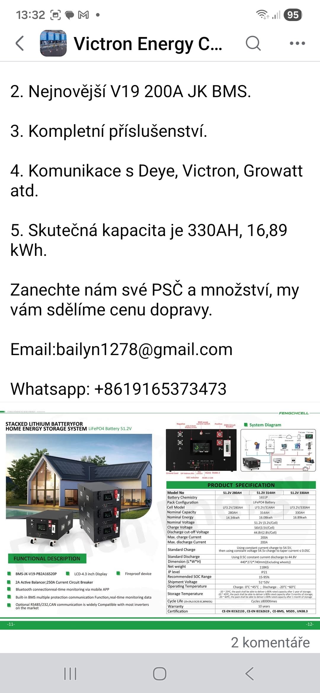 2,75kWp on-grid + 3,3kWp a 4,15kWp RS450/100 + MP2 5kVA + 2x 17x280Ah + JK BMS