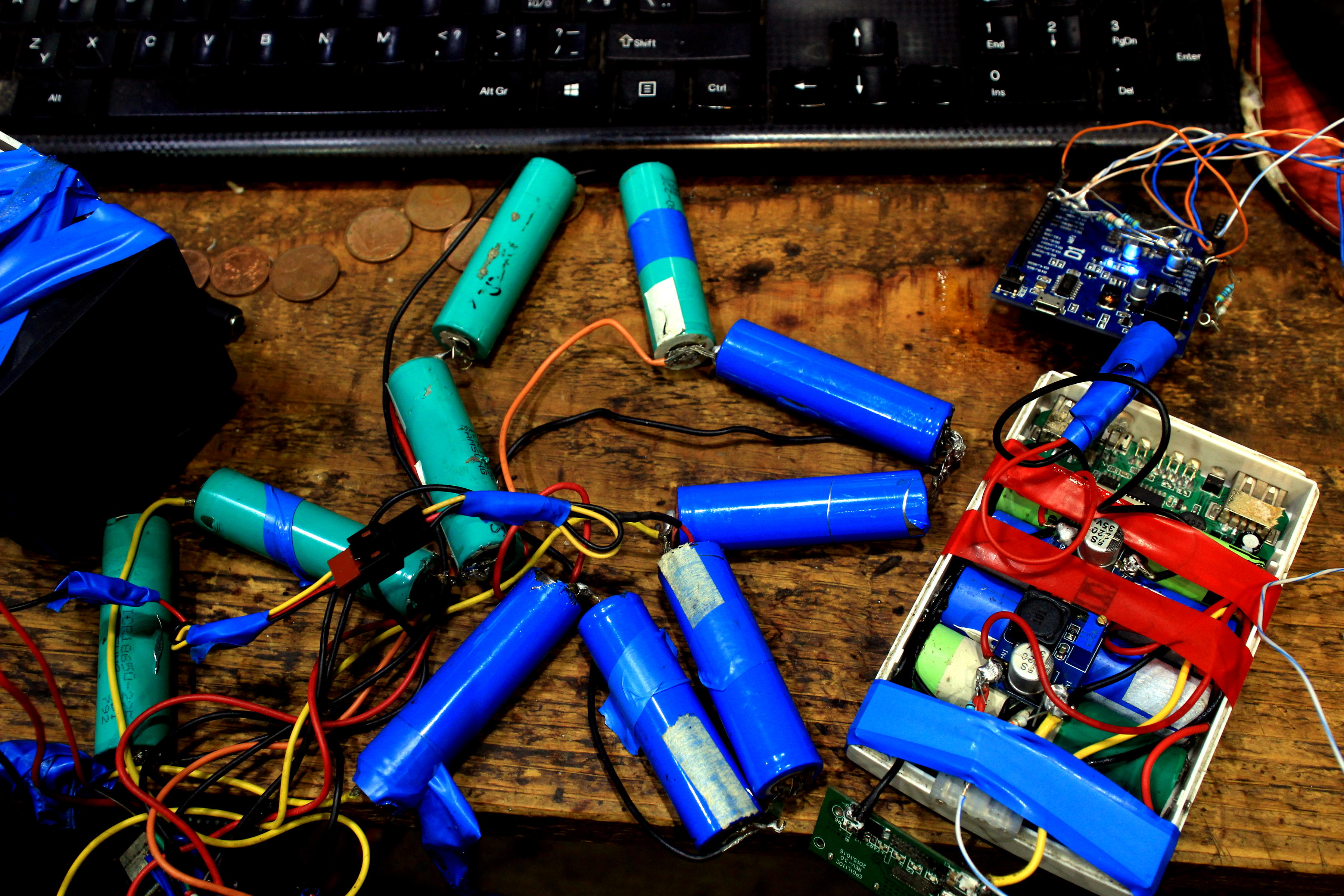 Skúšam vyselektovať dobré 18650 od zlých. 10s som zaťažil 100 W LED-kou a 4 sú horúce,
