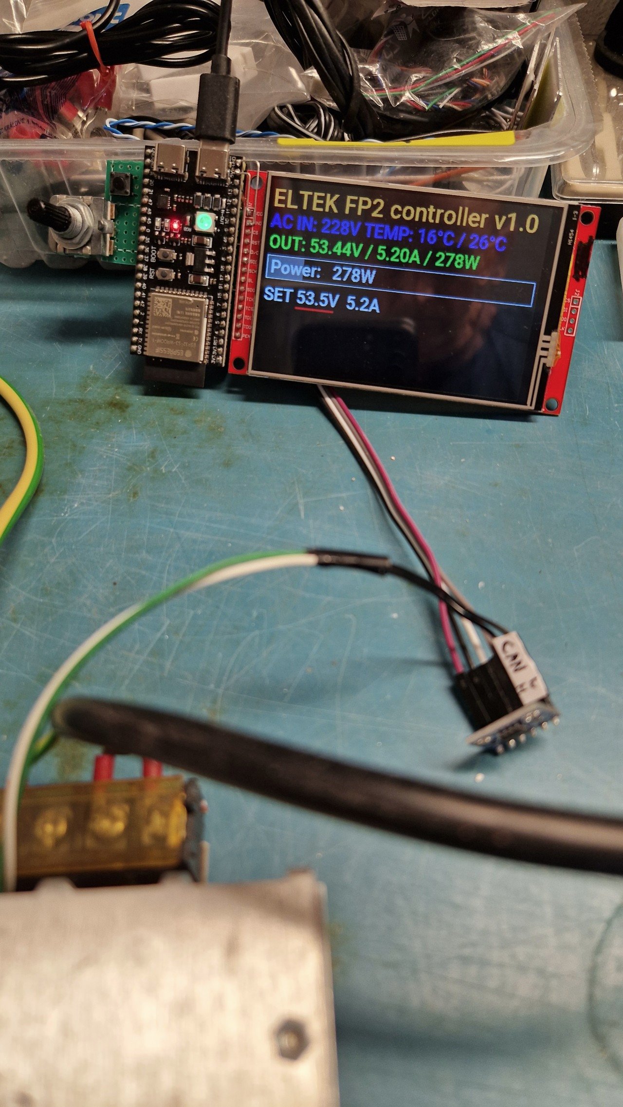 Tak jsem si pořídil na obměnu 3 krabičky Flatpack2 48/2000 HE. Bude tam napojeno ESP32 a ovládat se to bude přes MQTT. Během víkendu jsem komunikaci a SW relativně rozchodil (aktuálně jen slepenec funkčních částí, bude ještě třeba přepsat do finální podoby). Jen občas to hodí alert, kde v druhém bajtu je nastaven 4.bit, což ale dle protokolu uvedeného v https://github.com/the6p4c/Flatpack2/bl ... rotocol.md znamená FAN 2 SPEED LOW, háček je ale v tom, že verze HE má jen 1 ventilátor a ten se občas točí. Takže hádám, že ten popis protokolu tak úplně na tu HE verzi nesedí. Nemáte někdo lepší popis komunikačního protokolu?