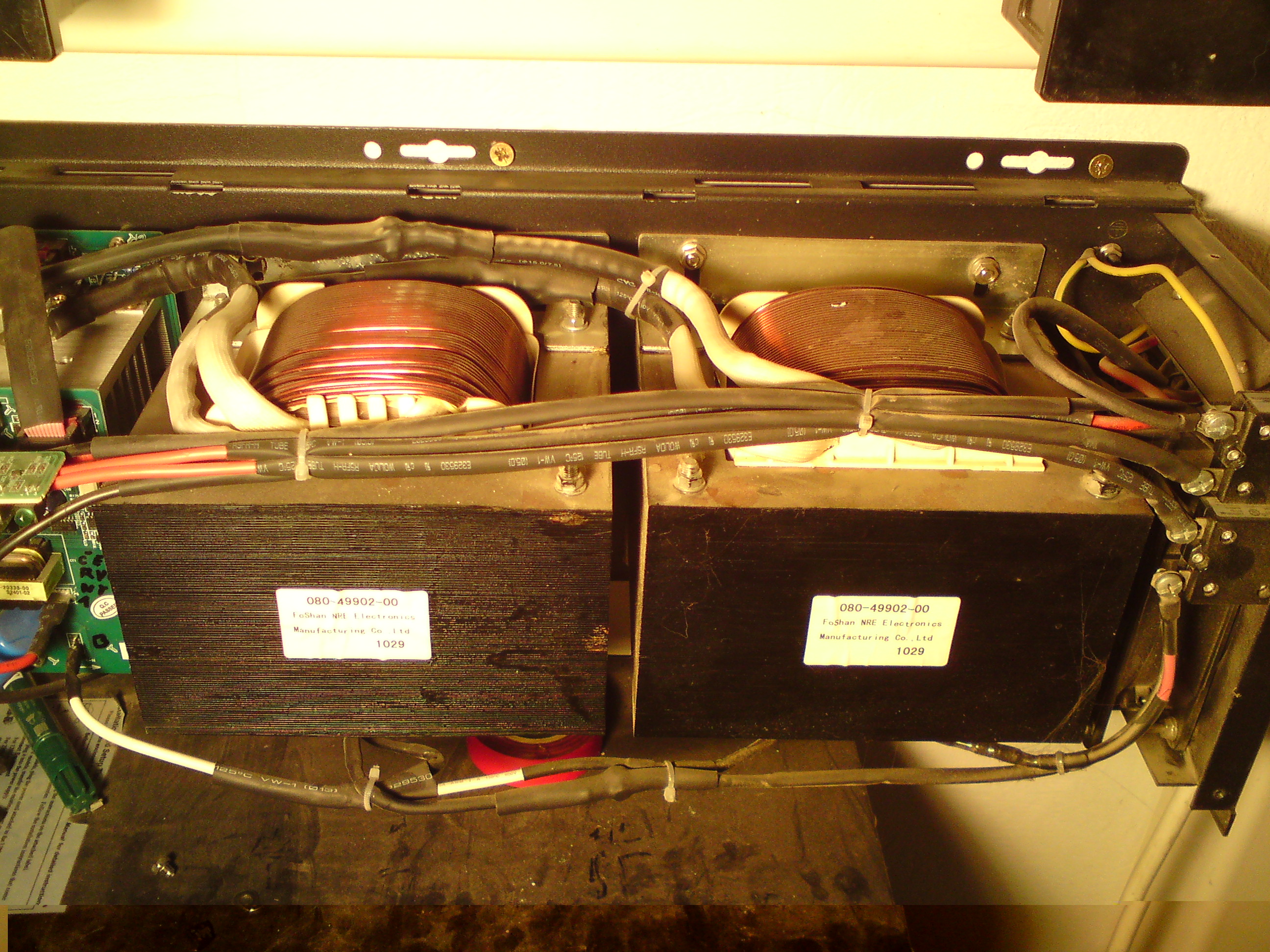 Dále mě napadá vyzkoušet to trafo samostatně odpojené od těch fetů a sekundárů a zapojit ho přes nějaké omezení k trafu 2x12Volt AC, nebo 24Volt jestli to nemá mezizávitový zkrat, to frafo má dvojité vynutí ?? na fotce vydím 3 tlusté vodiče v bužírce..