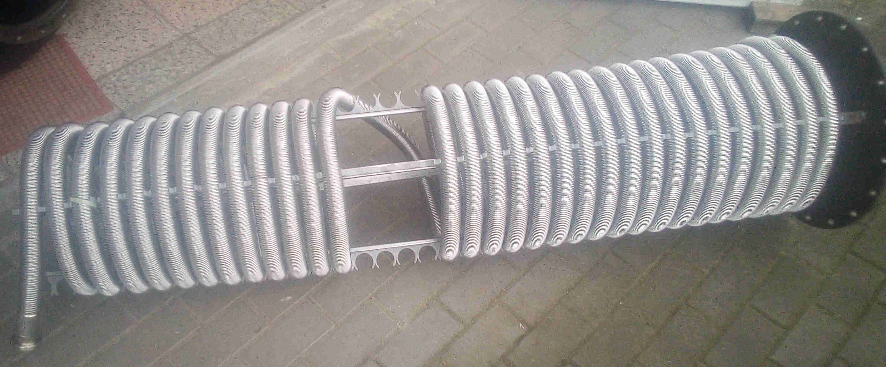 Před přišroubováním výměníku k nádrži je dobré zkontrolovat jestli nedošlo k pootočení výměníku a nepřekáží u nátrubků pro topná tělesa. Pak mne ještě napadlo že jsem ty závity nerezového vlnovce mohl trochu posunout a udělat tam další místo pro topné těleso, ještě výše než v polovině. Ale už jsem to nechtěl rozebírat, tak je to zatím tak, příště.