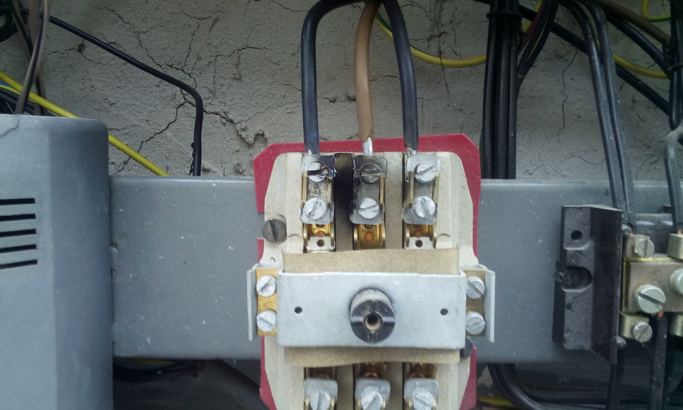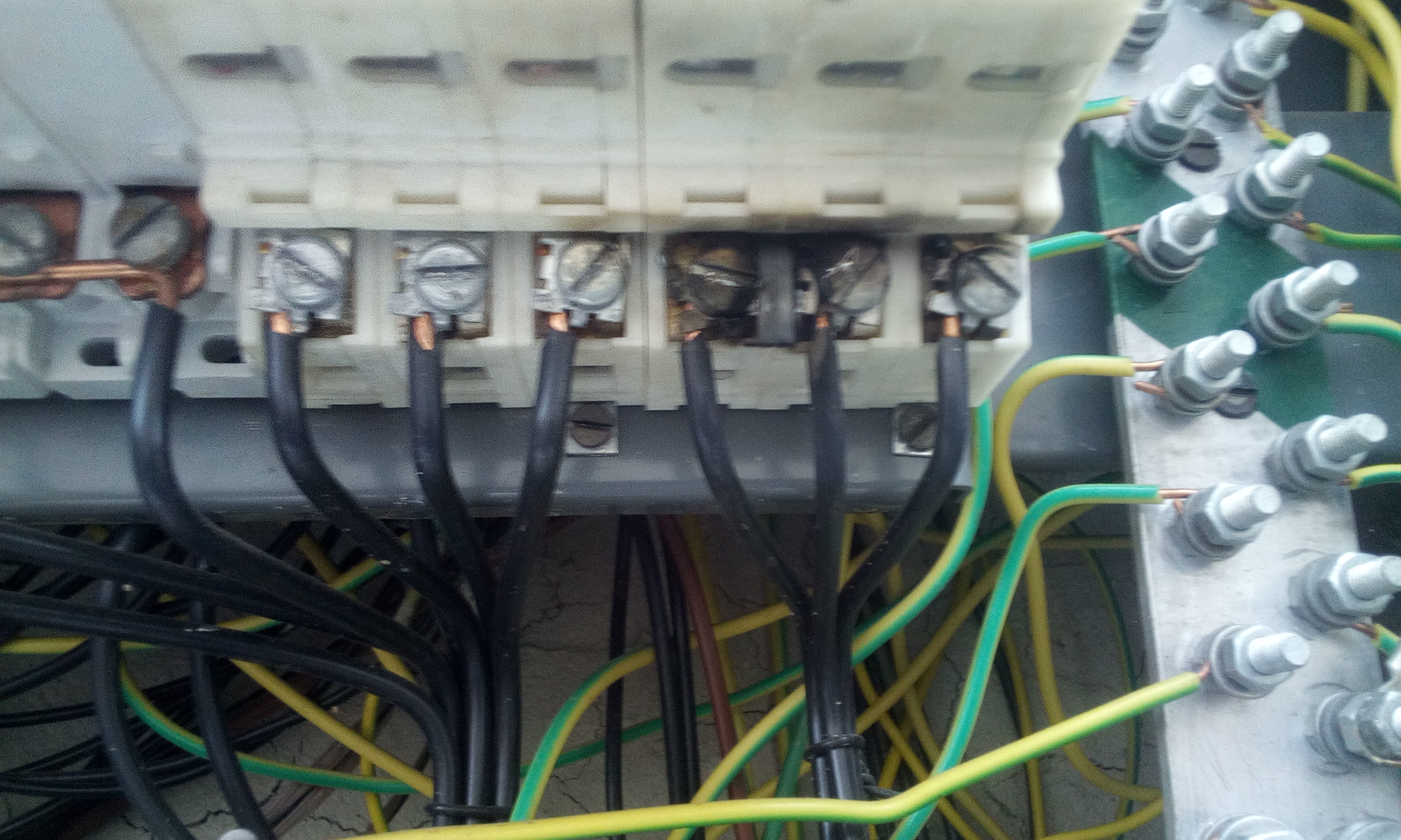 No na podkrovi de horela strecha su uplne upečene kablovania,teda to vtiahlo do elektriny.Ale mam zujimavosť v rozvodnej skrini.Viď foto. Obluk preskočil na dvoch miestach medzy dvoma fazami a na oboch miestach sa jednalo o rovnake fazi.Na elektrickom stlpe bola odpalena 40A nožova poistka strednej fazi. Teda v DS sa musela udiať čudna vec.