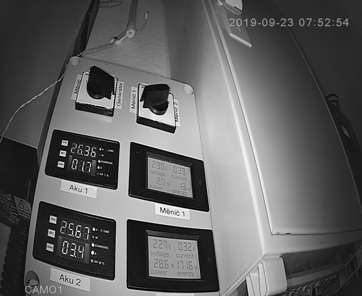 5,5kWp - 4x Solartec mono 180Wp +¨6x IBC 155Wp poly + 10x Solea 170Wp mono + 6x Husinage HSG 190Wp + 6x Calyxo 70Wp amorf vertikálně (JV), 2x ZN ShineSolar poly 250Wp + 2x 260Wp poly (JZ), Epever LS 3024B, Epever LS 2024B, MakeSkyBlue 20A, eSmart 3 - 60A, 19 kWh Li-Ion, Axpert MSXE PF1, 24V/3,0kW, Axpert MSXE 24V/2,4kW.