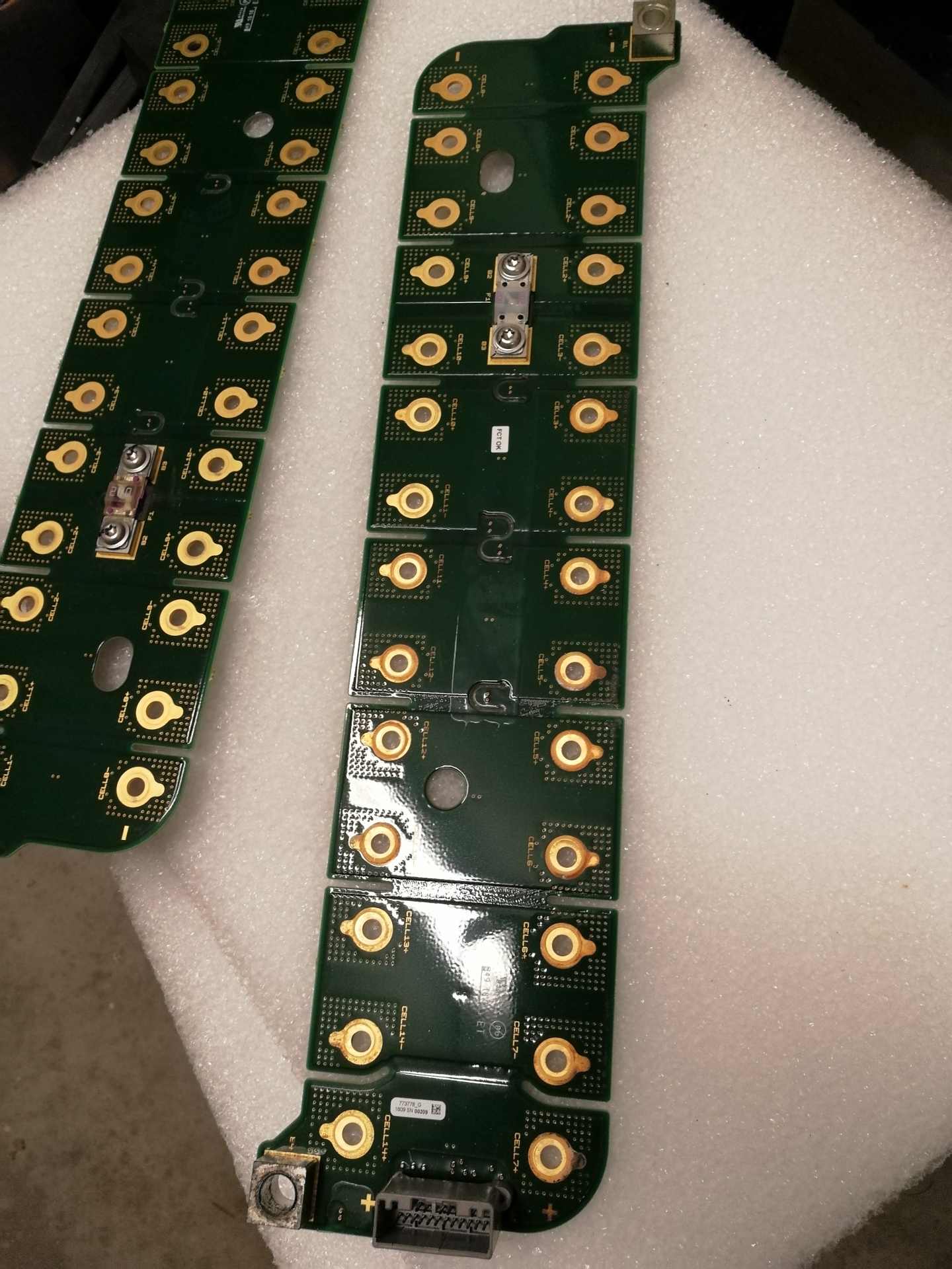 - první jsou pojistky od jednotlivých článků. To pro případ vnitřního zkratu jednoho z článků - aby s sebou nestrhl další.