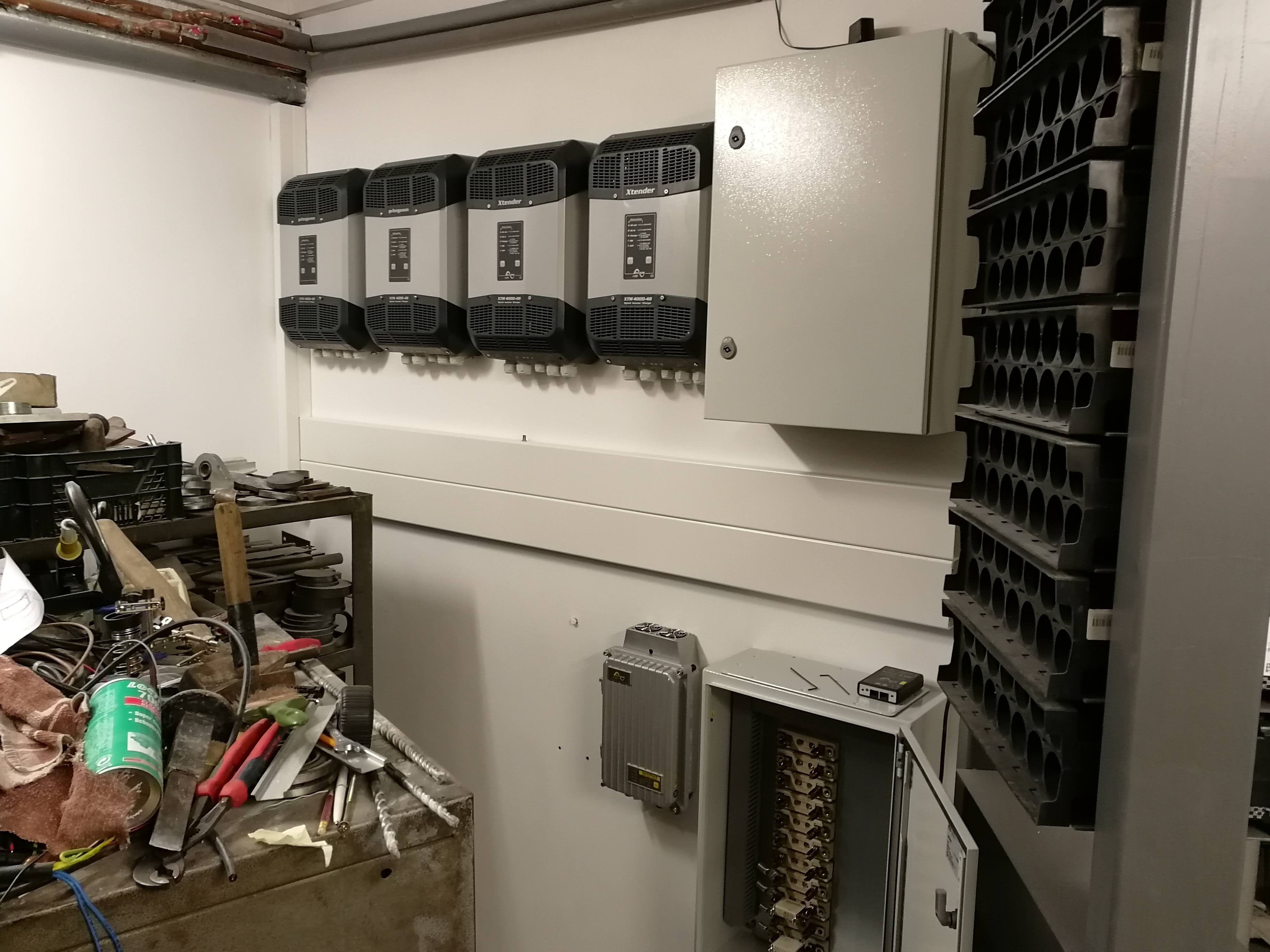 V provozu: ostrov 20kWp s dobíjením z DS, 6x XTM4000-48, 4xVT80, 80kWh LFP + Batrium