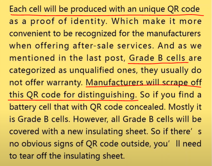 Asi to uzavriem takto, vzhladom na to ze sa uspesne pouzivaju "zodrate" baterie z E-aut, tak aj keby to bolo B, tak bude na nase ucely funkcne (dufam). Nechcem podryvat, ale mozno sa niekomu zacal kazit kseft. A co sa tyka nalepiek - pokial nie je priamo na stranke vyrobcu nejaky checker tak to nema vyznam. Mimochodom mam baterie priamo od ceskeho vyrobcu EV-battery a tam su tiez len nalepky s jednym cislom. Treba pockat na prakticke testy.
