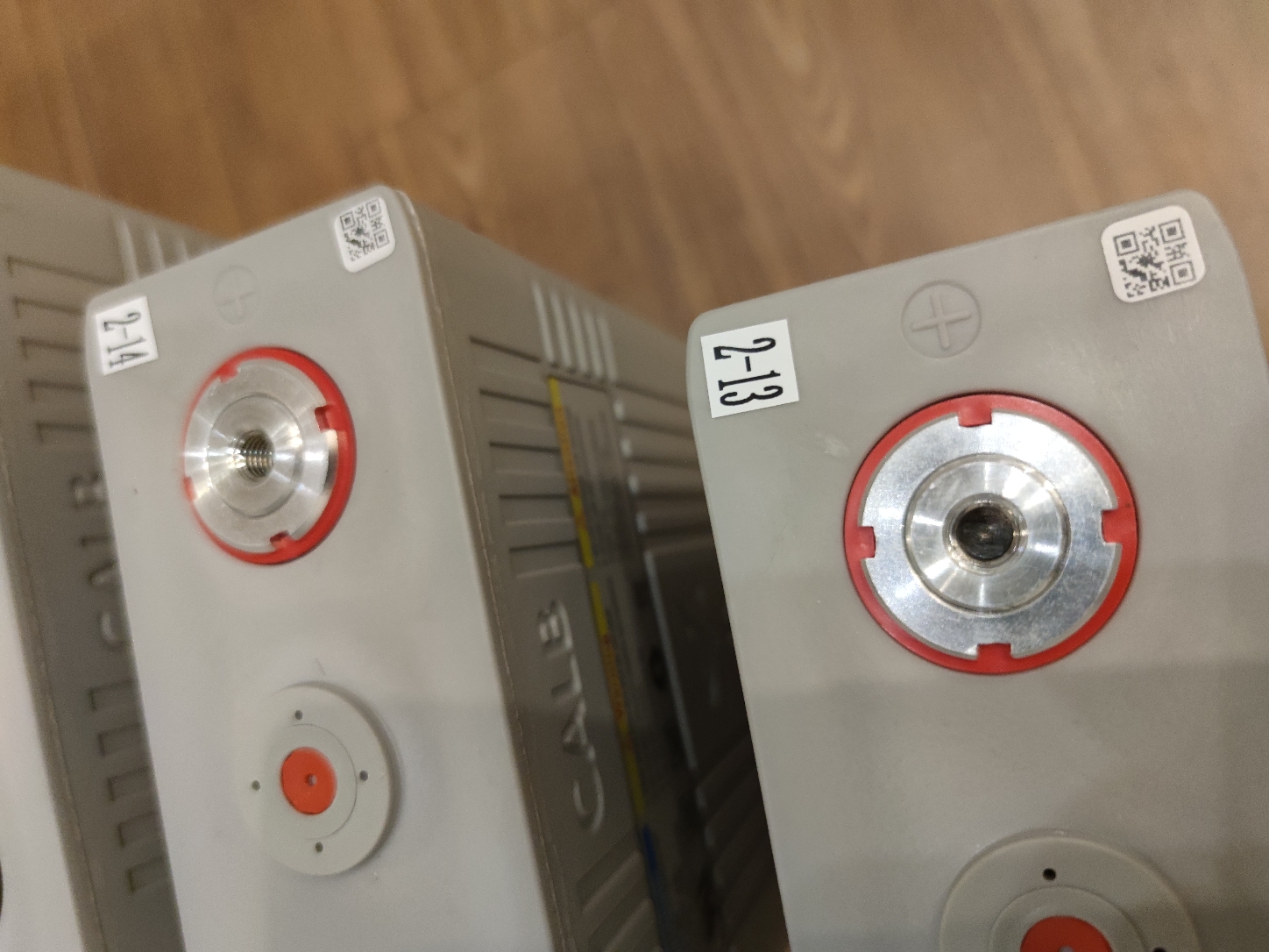 Články CALB SE 200AH, pokud jsou GRADE A, tak mají bílé štítky a dva kódy.