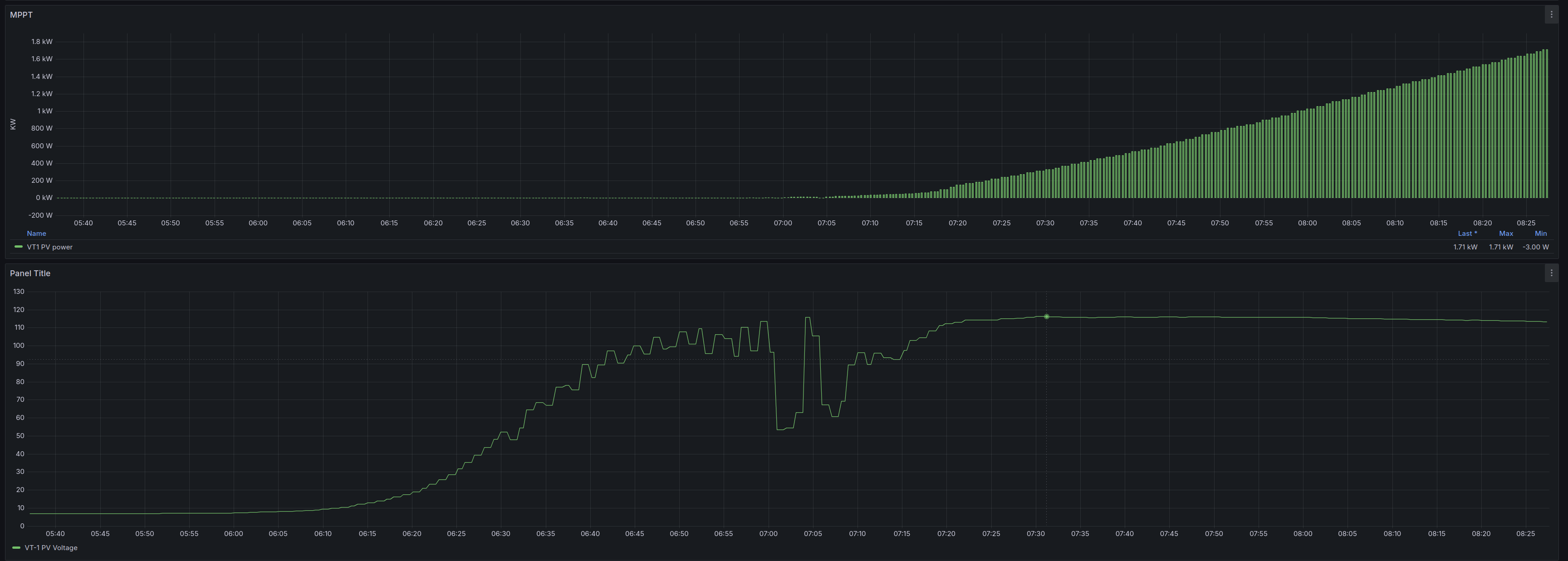 Máš pravdu,nemusí to byť zachytené v grafe,teraz som to kontroloval,v MPPT mám nastavené 15 sekundové zapisovanie do grafu.