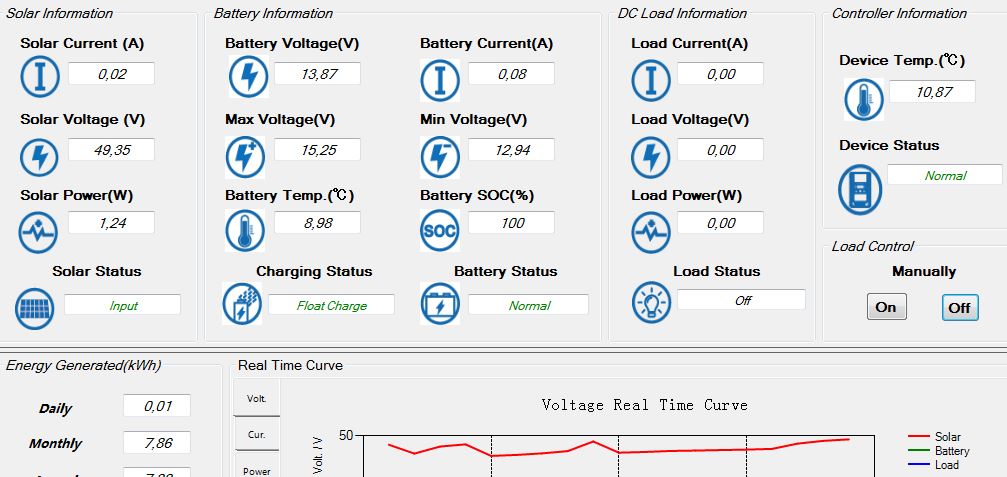 Nešír paniku. 16,22 V bude pravdepodobne len prekmit napätia, ktorý spôsobuje mppt regulátor. Aké napätie tam skutočne je počas absorpcie, treba odmerať na svorkách batérie !Soban píše:Daleko víc by mě znepokojovalo max voltage 16.22V to asi pro ty baterky nebude OK.