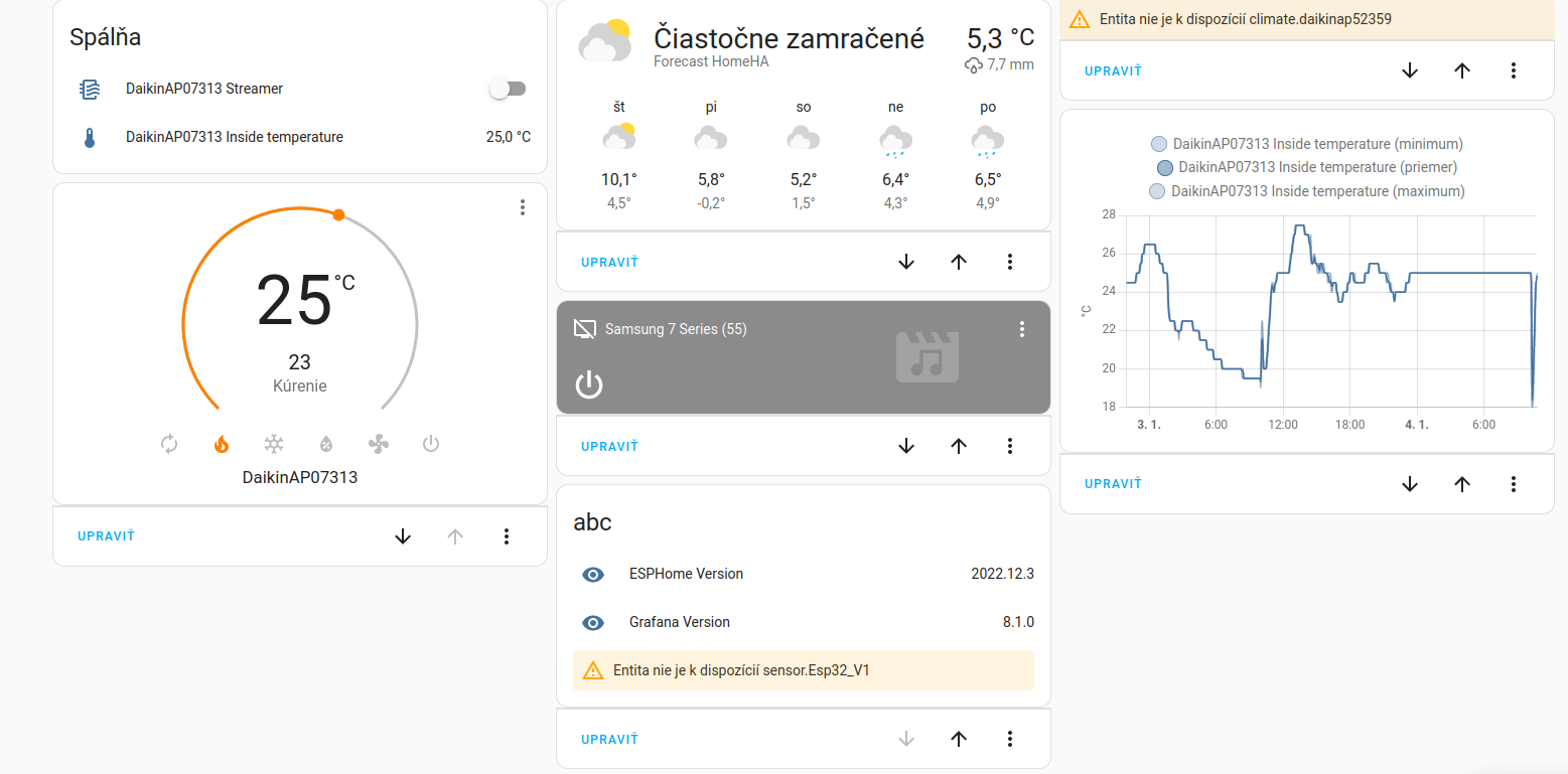pritom ona na mobile v App Daikinu ide OK.