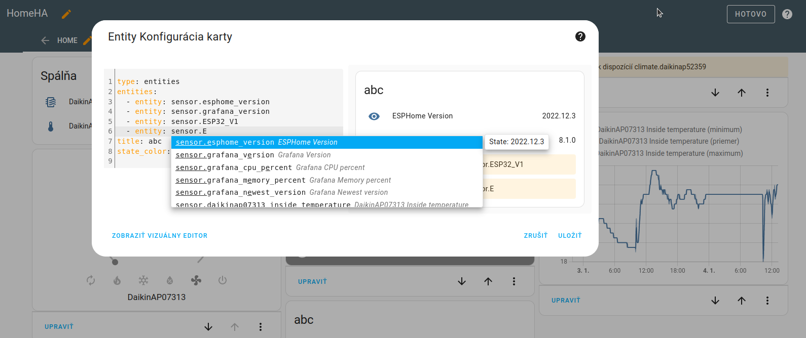 A zkusil jsi pro konfiguraci karty použít Vizuální editor a podívat se, jestli ti ty entity (v seznamu) nenabízí pod jiným názvem?