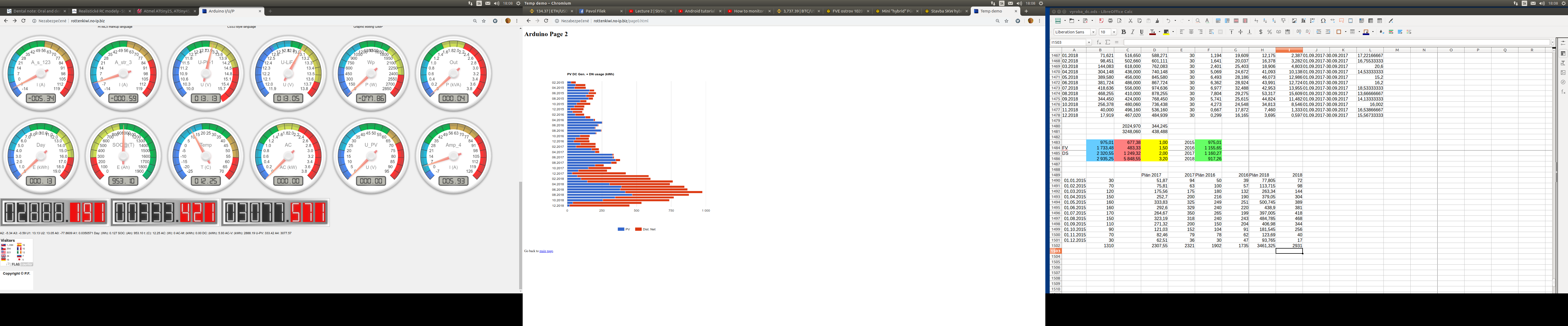 4,8kWp prifázovacia elektráren, 15,2kWp ostrov na ohrev TUV+kúrenie paralelne spojiteľný s 2,7kWp hybridom (5kW) s 14,4kWh LiFePO4(Pylontech) úložišťom. (Dohromady 22,7kWp v paneloch/94ks polykrištálov 60článkových)