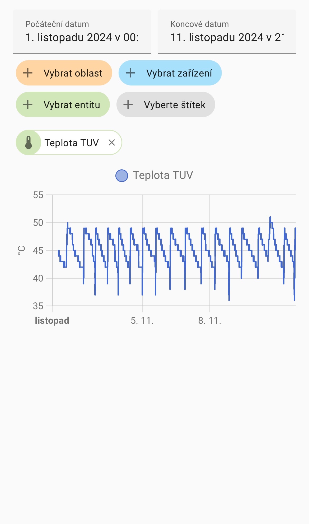 Franta2776 píše: pon lis 11, 2024 4:30 pmVidíš na spotřebu??Já ho v noci nevypnul a v 15:00 ohřát TUV.Do teď stojí jak mu natekla ta teplá voda z potrubí do Aku.Já mám 4kW barák +2kW garáž přes kterou jdou rozvody.