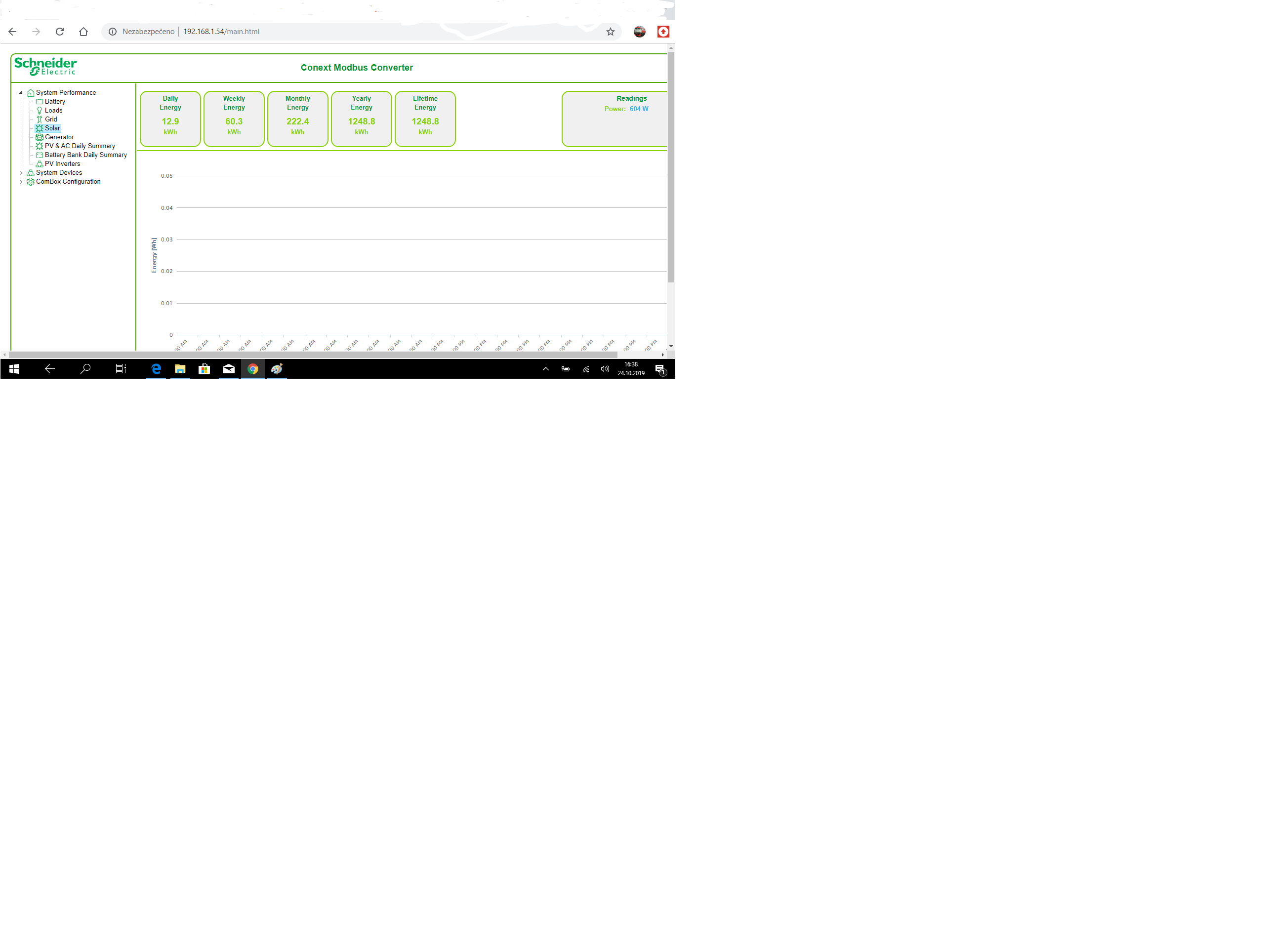 li ion 350 Ah@58V, venus@rpi3+, celkem instalováno 12,36 kWp, 460 m.n.m.