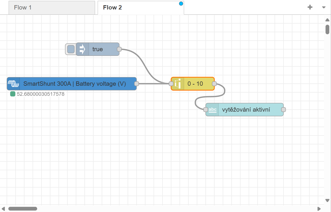 Jen jsem se pokusil o flow, abych z nějakého zadaného MIN (V) baterie dostal výstup 0 = to je ten start plynulého vytěžování
