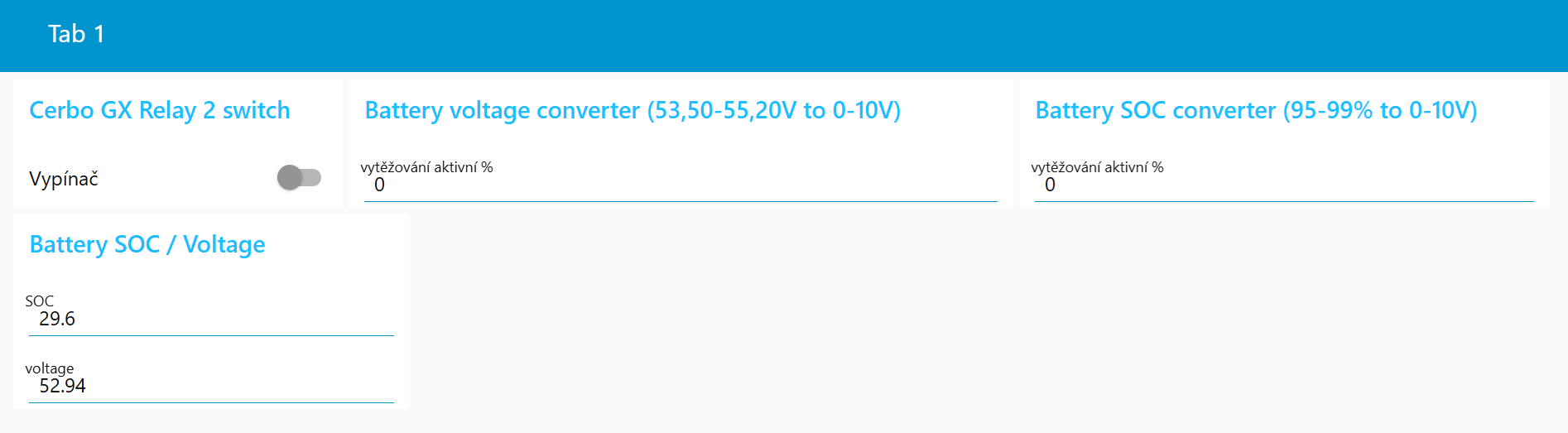 Nebude lepšie začať spínať(zvyšovať) záťaž až pri tých 55,2V v pravidelných intervaloch(napr. 5s) a pri 53,5V rovnakým spôsobom záťaž postupne vypínať? Ide mi len o to, že tým tvojim spôsobom sa pri nepriaznivých okolnostiach nikdy nad tých 53,5 nemusíš dostať pokiaľ už najmenšia záťaž bude väčšia ako aktuálna výroba. Pokiaľ to bol zámer, tak sa vopred ospravedlňujem.Radar píše: pát čer 27, 2025 6:39 pmMinimum řekněme 53,5, maximum 55,20, víc to nahoru netahám.