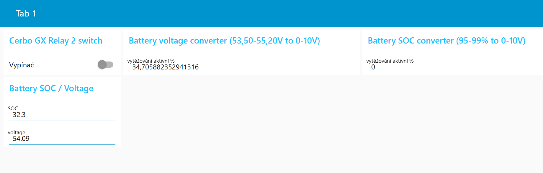 Rozklikni si ten node toho battery shuntu a uplne dolu si zaklikni zobrazovanie hodnoty na dve destinne miesta.Nebude ti potom zobrazovat take dlhe cislo toho napetia baterie