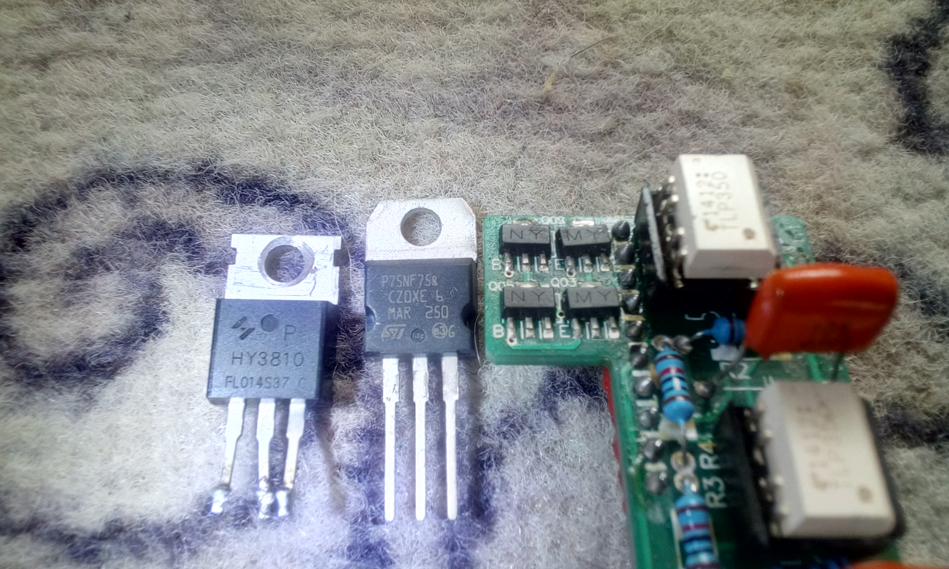 Napadlo ma ich zameniť za P75NF75,čo mam kupene do 24v PJ,lebo datasheet ukazal,že su skoro totožne.Rozdiel je,že HY su do 100v a 180A
