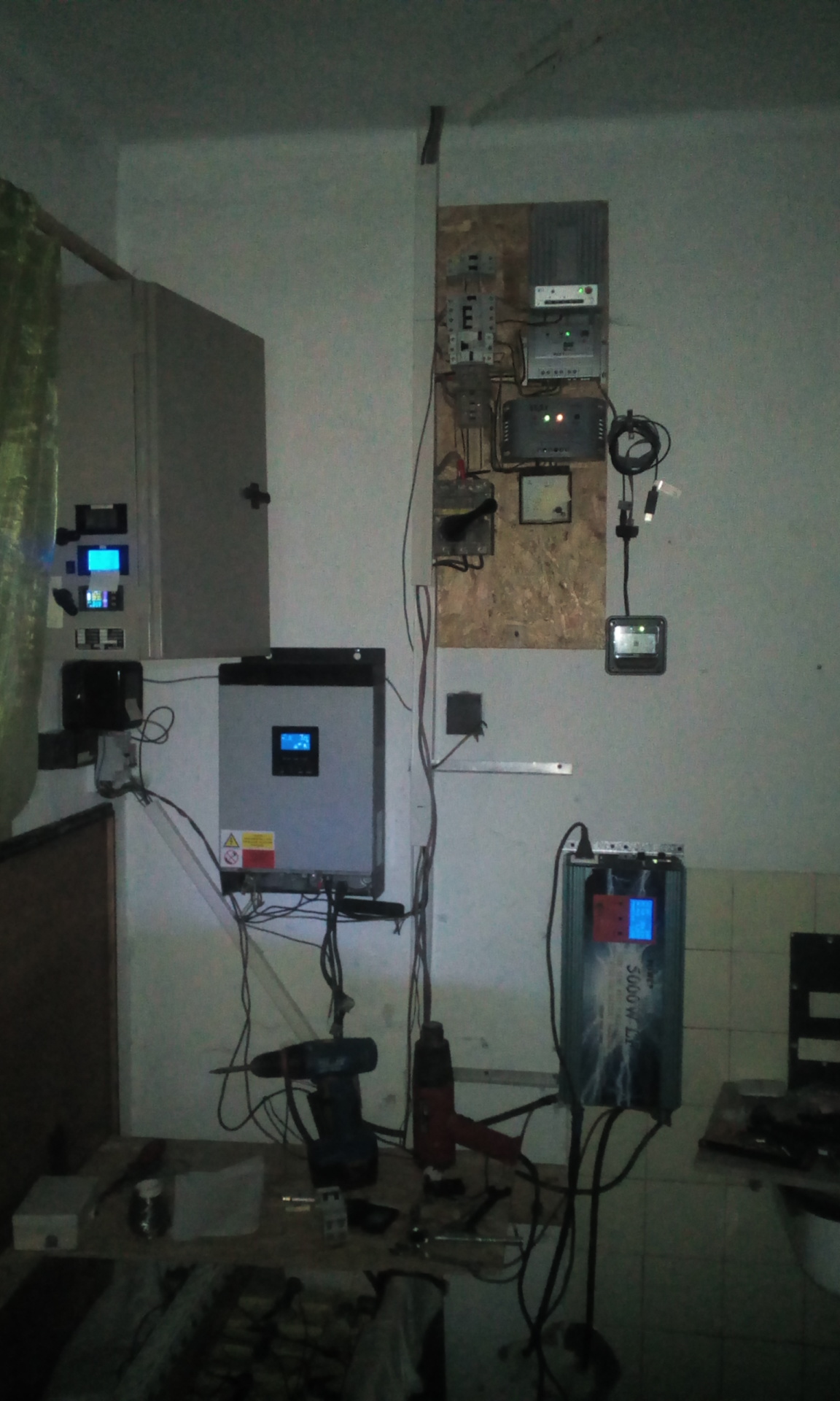 5,5kWp - 4x Solartec mono 180Wp +¨6x IBC 155Wp poly + 10x Solea 170Wp mono + 6x Husinage HSG 190Wp + 6x Calyxo 70Wp amorf vertikálně (JV), 2x ZN ShineSolar poly 250Wp + 2x 260Wp poly (JZ), Epever LS 3024B, Epever LS 2024B, MakeSkyBlue 20A, eSmart 3 - 60A, 19 kWh Li-Ion, Axpert MSXE PF1, 24V/3,0kW, Axpert MSXE 24V/2,4kW.