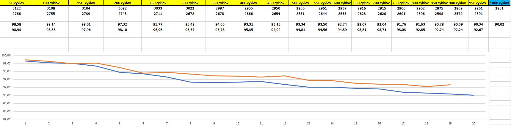 Obe batérie dosiahli 1000cyklov....Pokračujeme ?